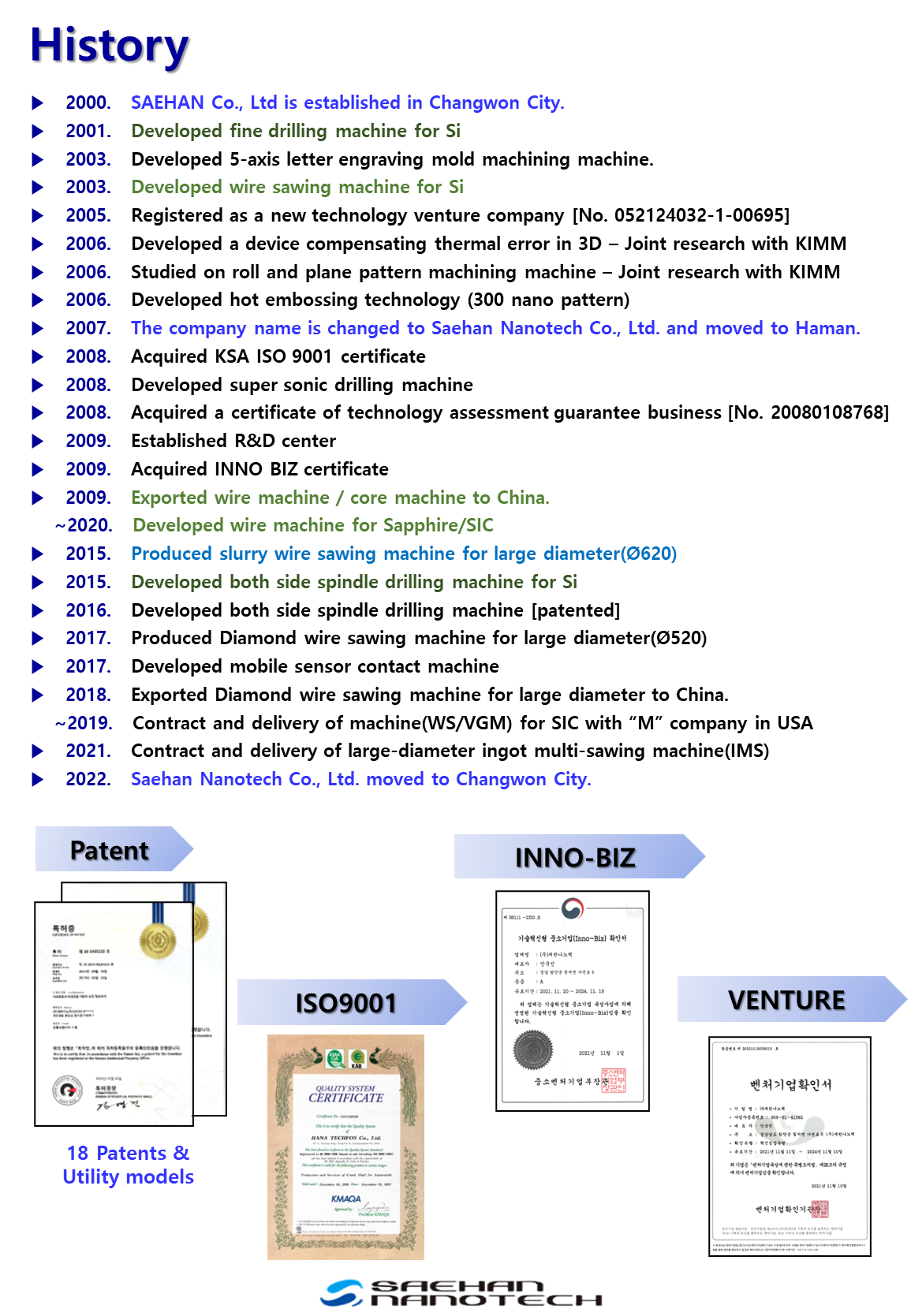 Since our establishment in 2000, we have developed and produced equipment such as micro drilling and wire sawing machines. From 2015 to 2017, we upgraded those machines, significantly contributing to our growth, resulting in exports of 4 million dollars in 2021 and record sales in 2022.