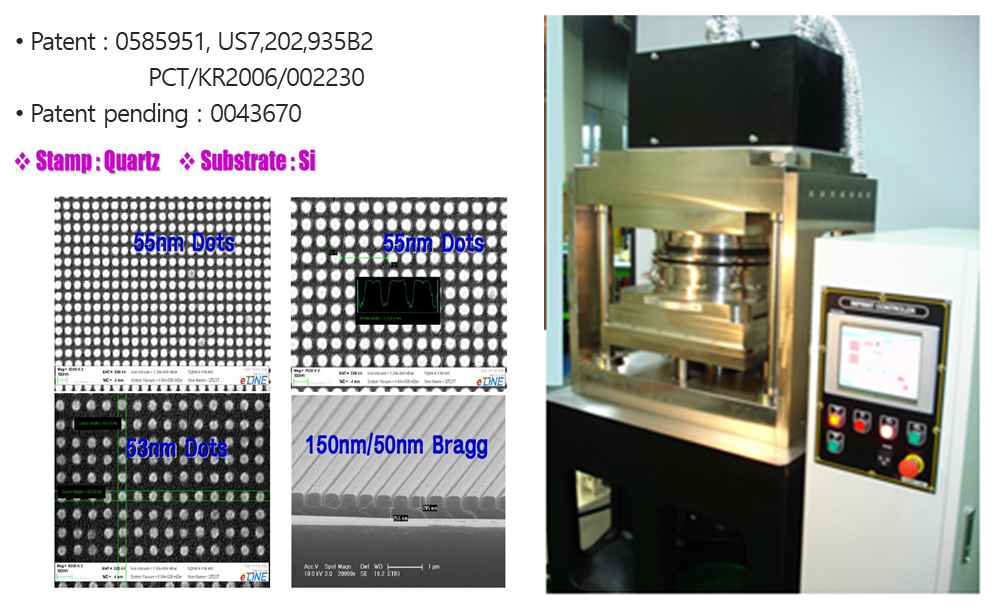 | Imprinting Conditions | Wafer: 1~4” Room Temperature Imprinting Pressure ≤ 2bar Single Layer / Single Step |