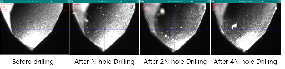 Tested using Saehan Nanotech's drilling machine(Both-Sided Spindle Drilling Machine, BSSD500), little chipping was observed in the drill after processing, and the size and shape of the holes were consistent.